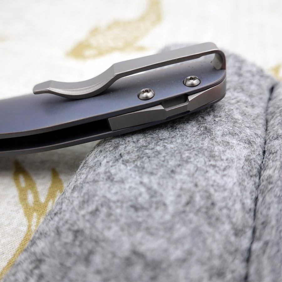 As a great color contrast, the 3D milled pocket clip and the backspacer have been anodized in blue, which again underlines the modern look of the knife.