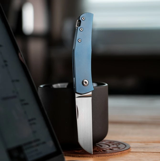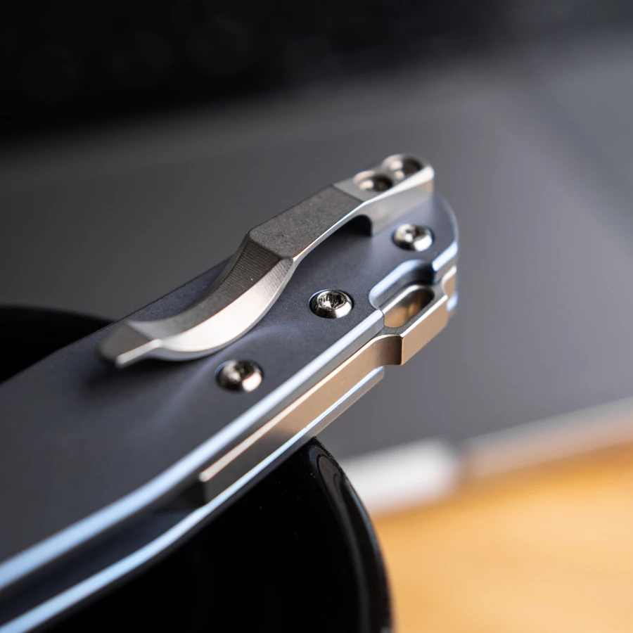 The incredibly clear line and the choice of materials that go hand in hand with it, make the Monte Carlo appear both discreet and noble and sporty and relaxed. The handle is an open titanium construction, which is connected on the back by a colored anodized titanium backspacer. The open design makes it very easy to clean the knife after use, for example if dirt is on the inside.