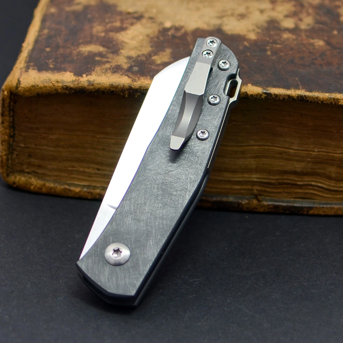 The zirconium handle scales offer an exciting surface that also feels great thanks to the brushed finish. The backspacer as well as the clip are made of gray titanium.