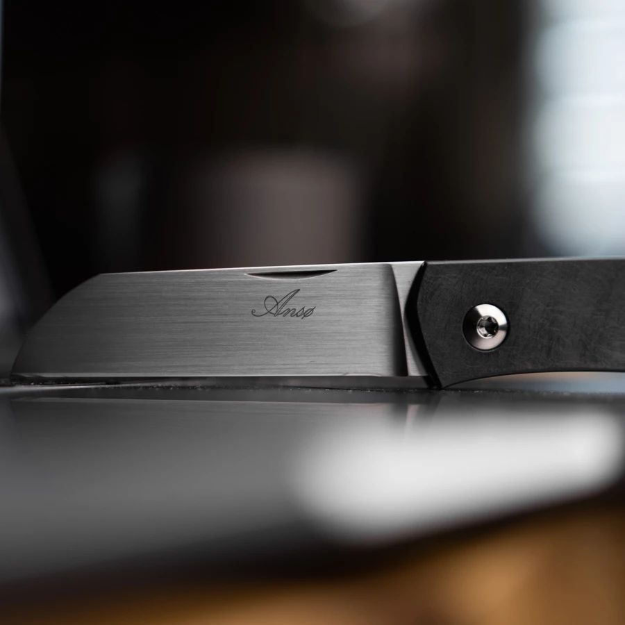 Jens Anso has once again thought about how he can improve the Monte Carlo. The result is new titanium screws, a uniform width of the handle scales, and even better and more precise machining processes. Your Monte Carlo comes with a small leather sheath that protects the surface from scratches when you just want to put the knife in your pocket.