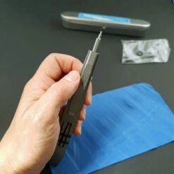 Like all Ansø tools, the Prybar12 is completely manufactured in his workshop in Denmark. The titanium is first blasted, then stonewashed and finally color anodized.