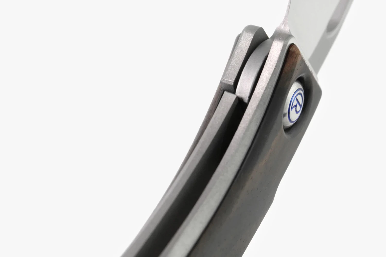 Above the two titanium scales is the real highlight of this little gentleman folder: the handle inlays made of stabilized precious wood are a total eye-catcher. The wood pieces have been sanded to seamlessly embed themselves into the titanium, making the Mnandi a real pleasure to hold.