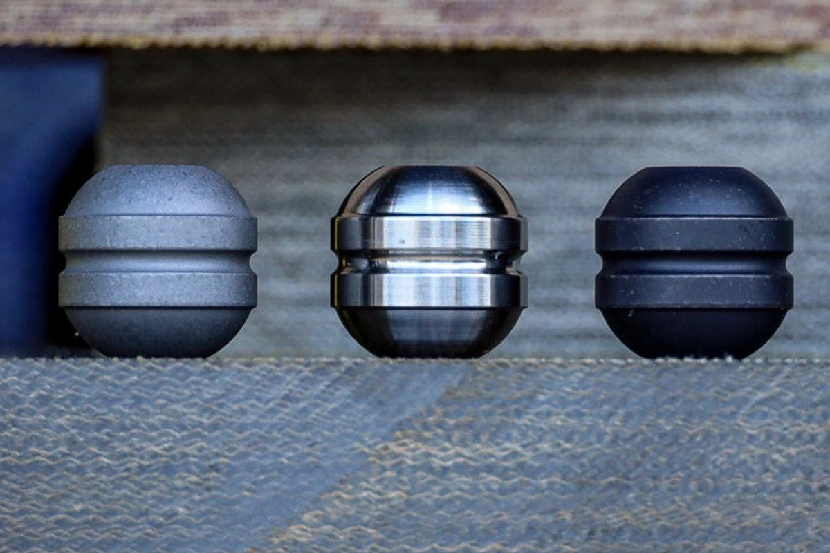 - In two finishes: Blasted and Tumbled = matt gray, Satin = matt/shiny, Blackened = black Titanium