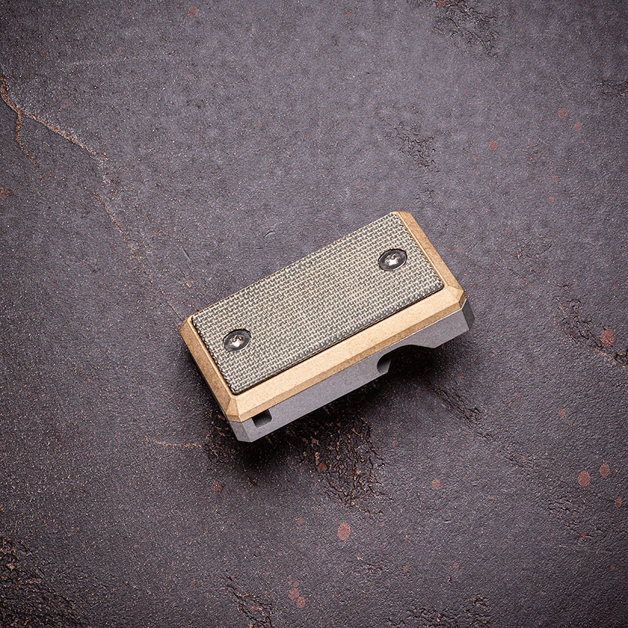 “I’ve always been very impressed with all the great makers in the EDC scene who build cool stuff that people carry and use every day. I’ve always thought Worry Stones were nifty,but I’m also a sucker for things with added value. In and of themselves, these are just blocks that are only good as fidget toys or trouser weights. That’s why I had the spontaneous idea to integrate a bottle opener. That it should be modular was my concept from the beginning, so that everyone can assemble it to fit his EDC. Of course, it’s made of my favorite materials: titanium, micarta and brass.”