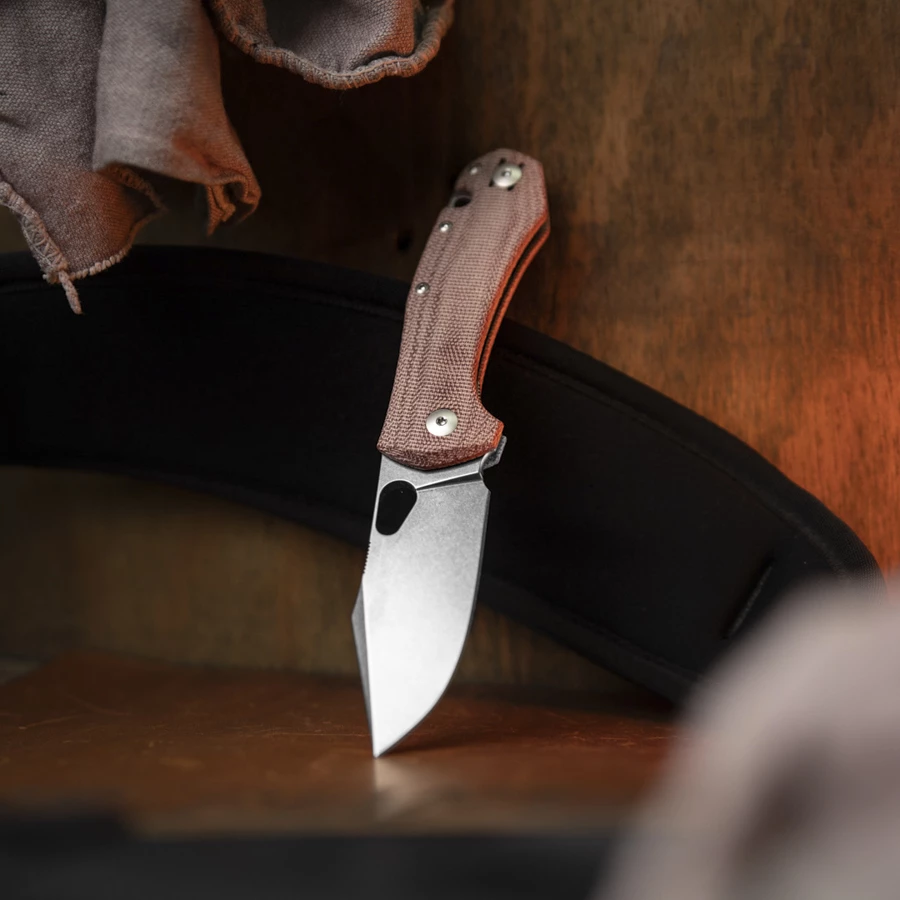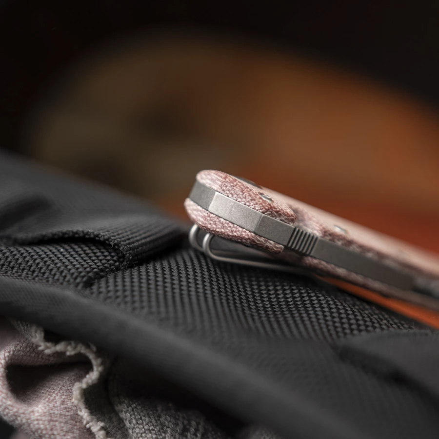 Micarta Red – Titanium backspacer – Blade finish: Stonewashed