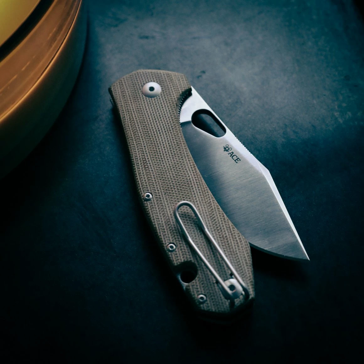 Jesper Voxnaes and Jens Anso have created a real eye-catcher with the blade. The swedge and the elegant curve of the tip give the Grand a very attractive appearance. For the steel GiantMouse chose Elmax, which was already used for the Clyde model. Elmax is not only able to be ground to a razor-sharp edge, but is also highly resistant to rust.