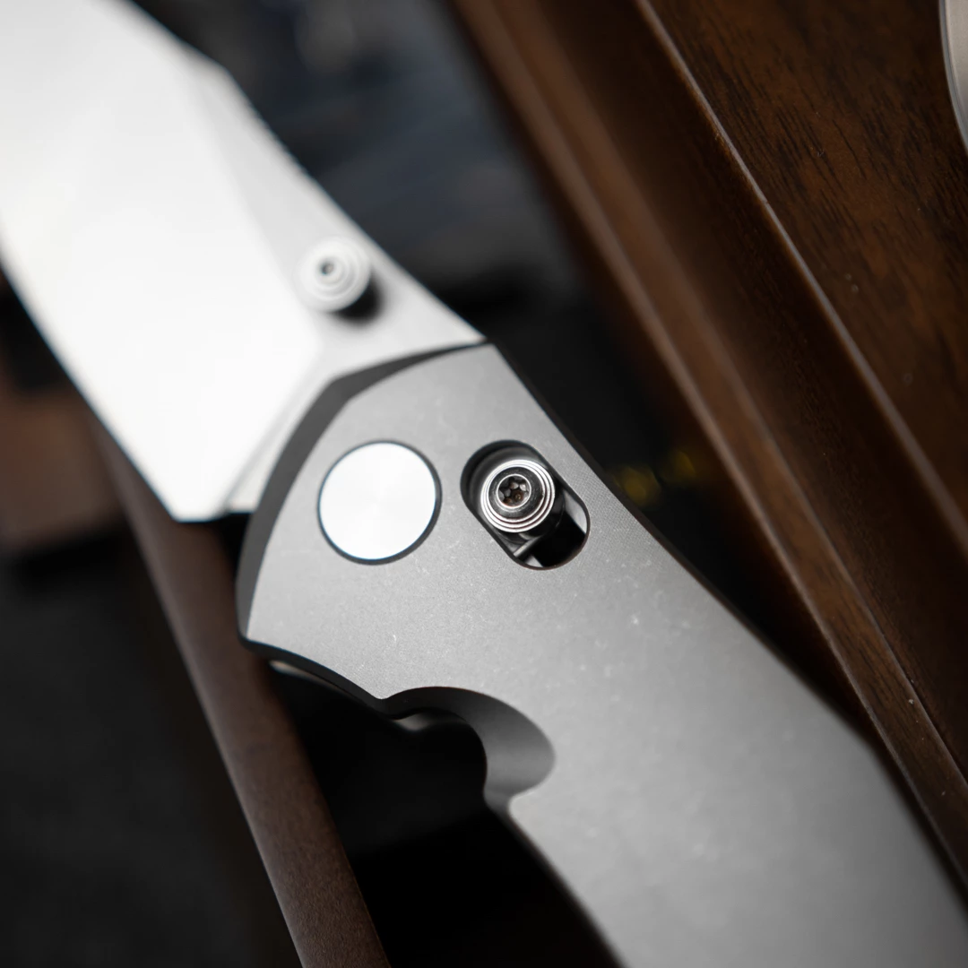 Depending on your personal taste, you have the choice of either titanium or lightweight micarta handle scales. For the best possible balance, both versions have a solid brass backspacer. Made – just like the Farley – by Bestech.