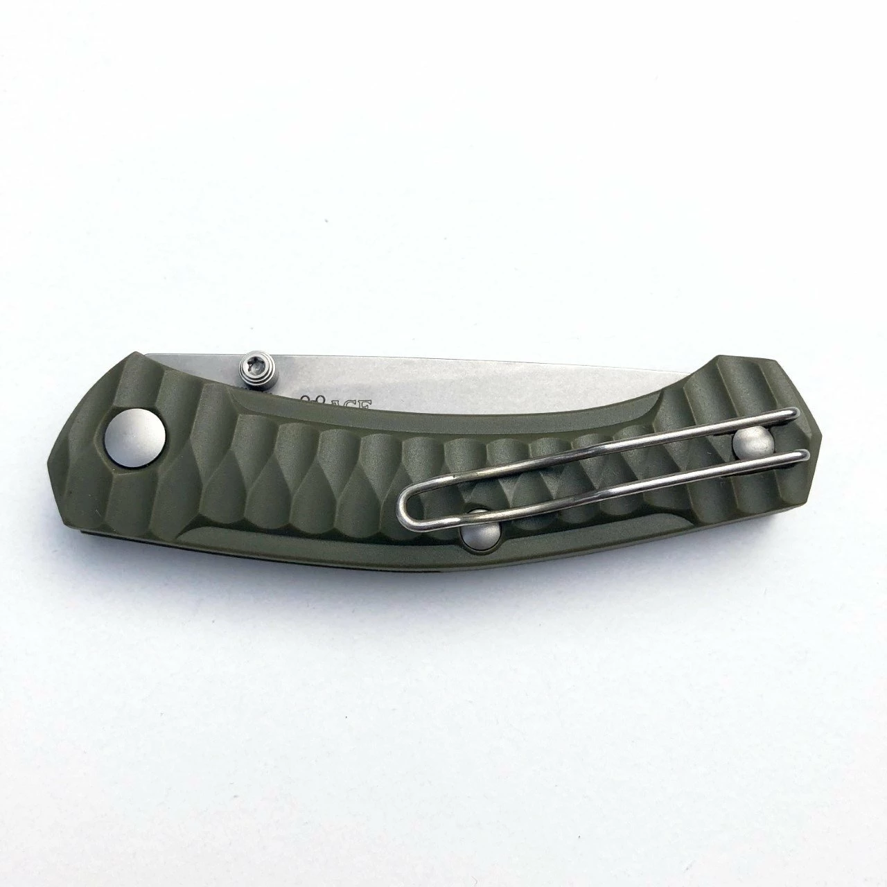 Hidden under the handle material there is a liner made of Asis 420 stainless steel, which also serves to lock the blade when the knife is open. For the opposite handle, the manufacturer has come up with something pretty clever: instead of anchoring the screws for the stop pin and blade axis directly in the FRN, a kind of mini-liner was used to hold all screws for the knife’s pivot. This makes the whole construction more stable and above all more durable.