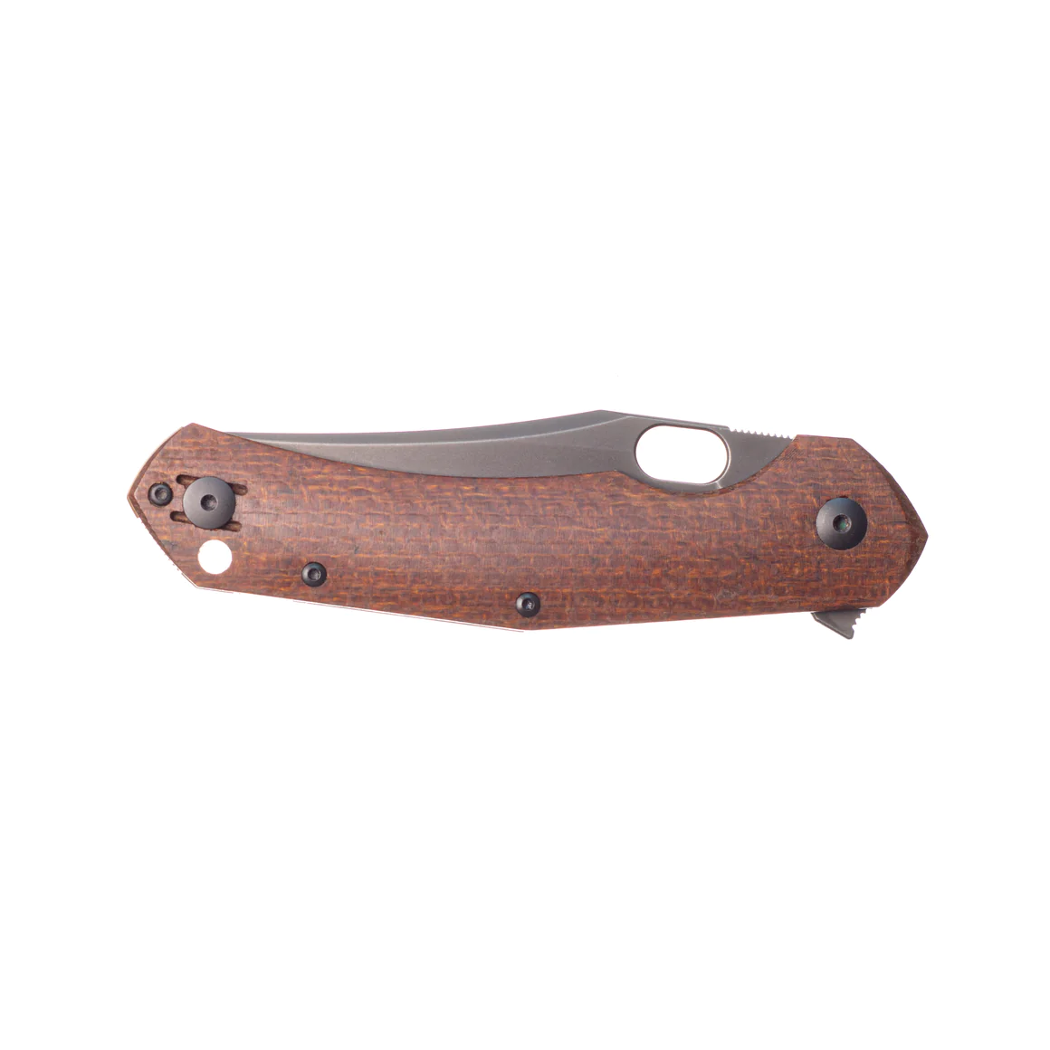 The Jutland is one of the larger GiantMouse knives. If the design looks familiar, it’s probably because the Jutland’s look is clearly based on the extremely limited and long out-of-print GM8. The 8.5cm long blade has a very long drawn swedge and gives the knife a modern look. To lock the blade running on ball bearings, a robust linerlock was installed, which ensures maximum safety while working. A flipper tab, which shoots the blade out of the handle at lightning speed, provides a certain amount of fun.