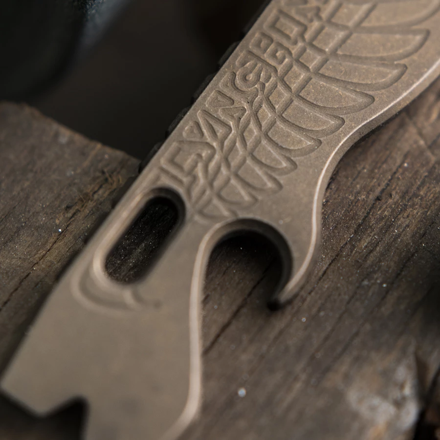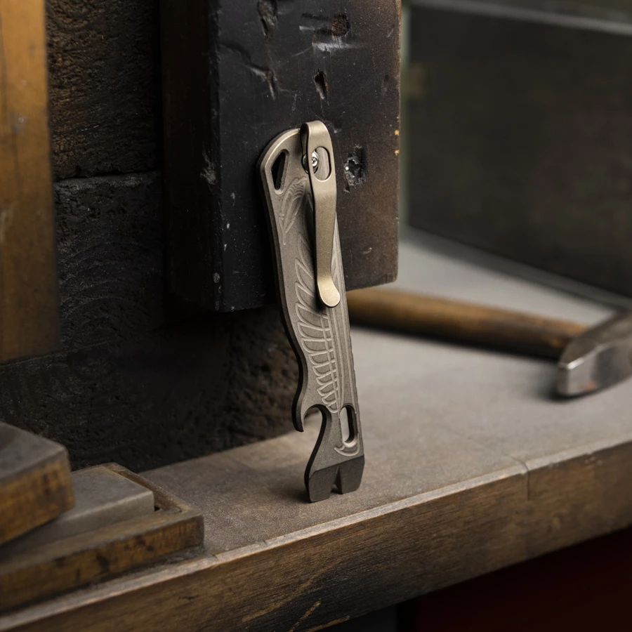Casey Lynch has created some serious hype in the gear and knife community with the All Access Pass Prybars. Hard to get and extremely popular! These handy pocket-sized pry bars are not only great for prying, screwing, scraping and anything else a knife blade is too delicate for. Also beer and of course all other drinks with crown caps can be opened with the cap lifter with ease. Completely milled from one piece of the highest quality 6AL-4V titanium and the typical Lynch Deep Carry Clip. All Lynch tools are indidually hand finished. 100% Made in America
