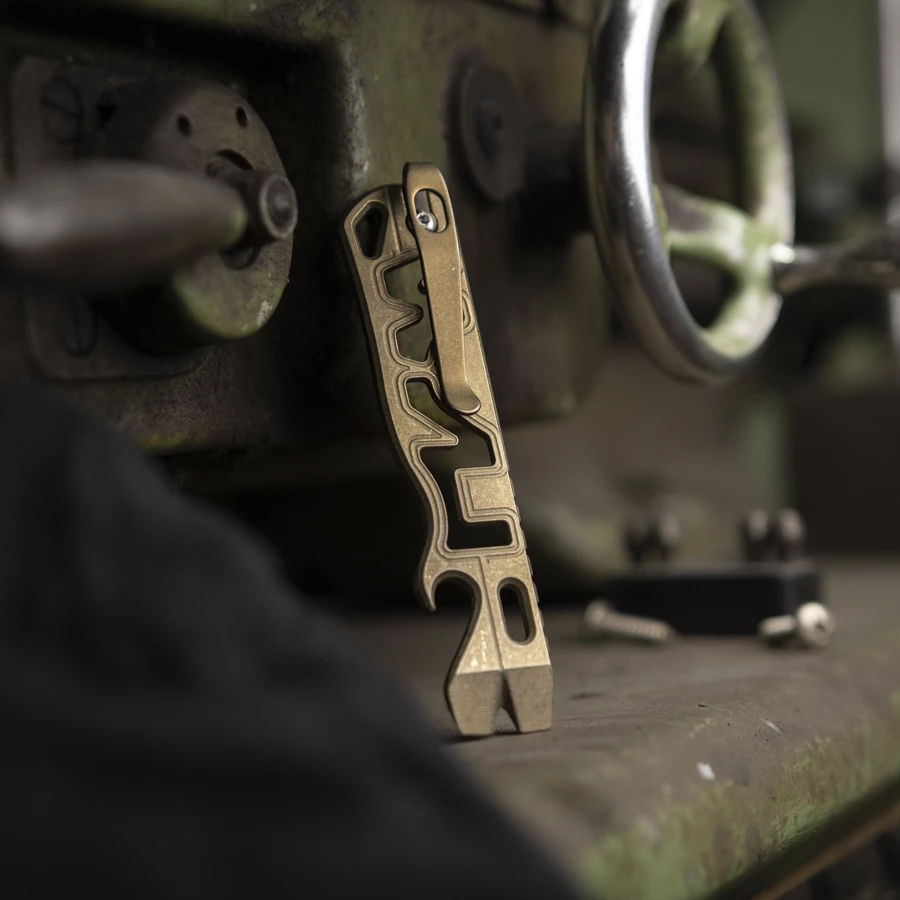 Casey Lynch has created some serious hype in the gear and knife community with the All Access Pass Prybars. Hard to get and extremely popular! These handy pocket-sized pry bars are not only great for prying, screwing, scraping and anything else a knife blade is too delicate for. Also beer and of course all other drinks with crown caps can be opened with the cap lifter with ease. Completely milled from one piece of the highest quality 6AL-4V titanium and the typical Lynch Deep Carry Clip. All Lynch tools are indidually hand finished. 100% Made in America