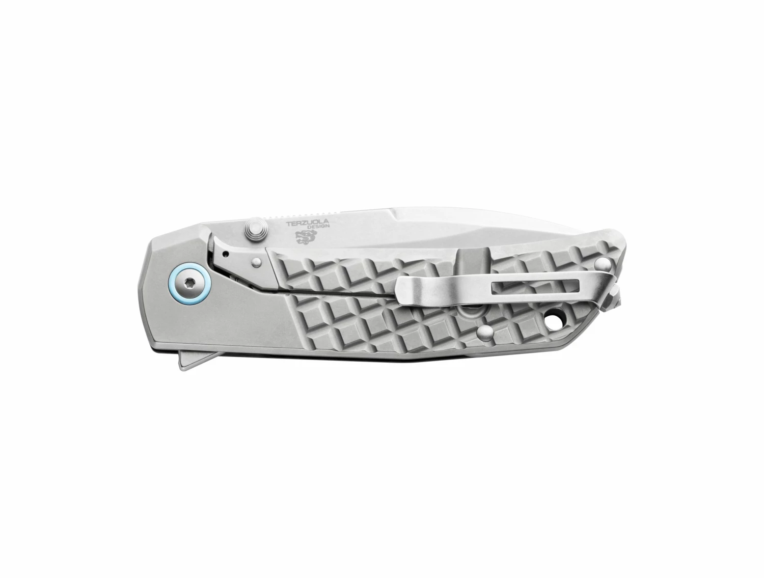 - Accent: blue anodized titanium ring around the bolt