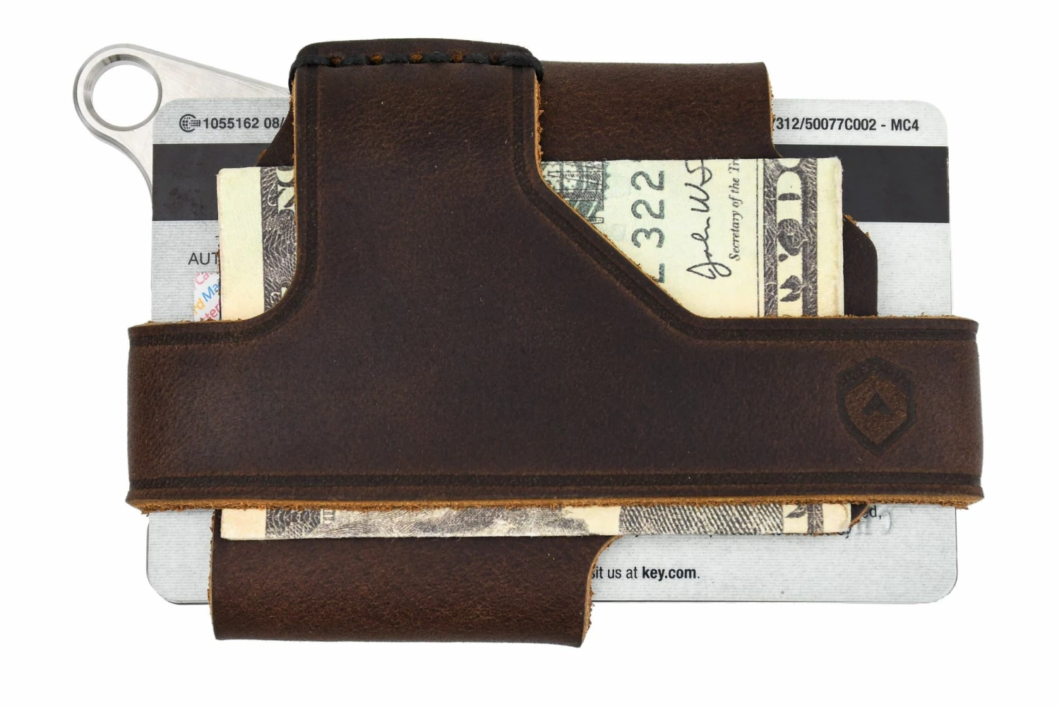 Slim-Wallet made of solid steel or titanium and top-grain oil-tanned leather
