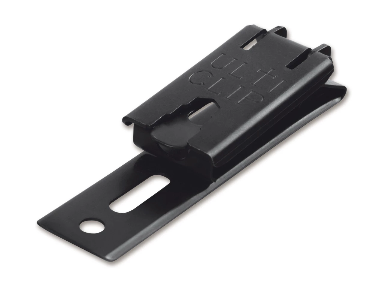 The UltiClip carrying systems are an ingenious invention to attach knife sheaths but also holsters and equipment of all kinds comfortably but with maximum stability to your trouser pocket, waistband or belt. The different slots and holes allow a variety of mounting options. The clip can be operated with one hand, but offers tremendous gripping force retention as soon as it is closed. As a result, the UltiClips are an extremely reliable and versatile carrying system.