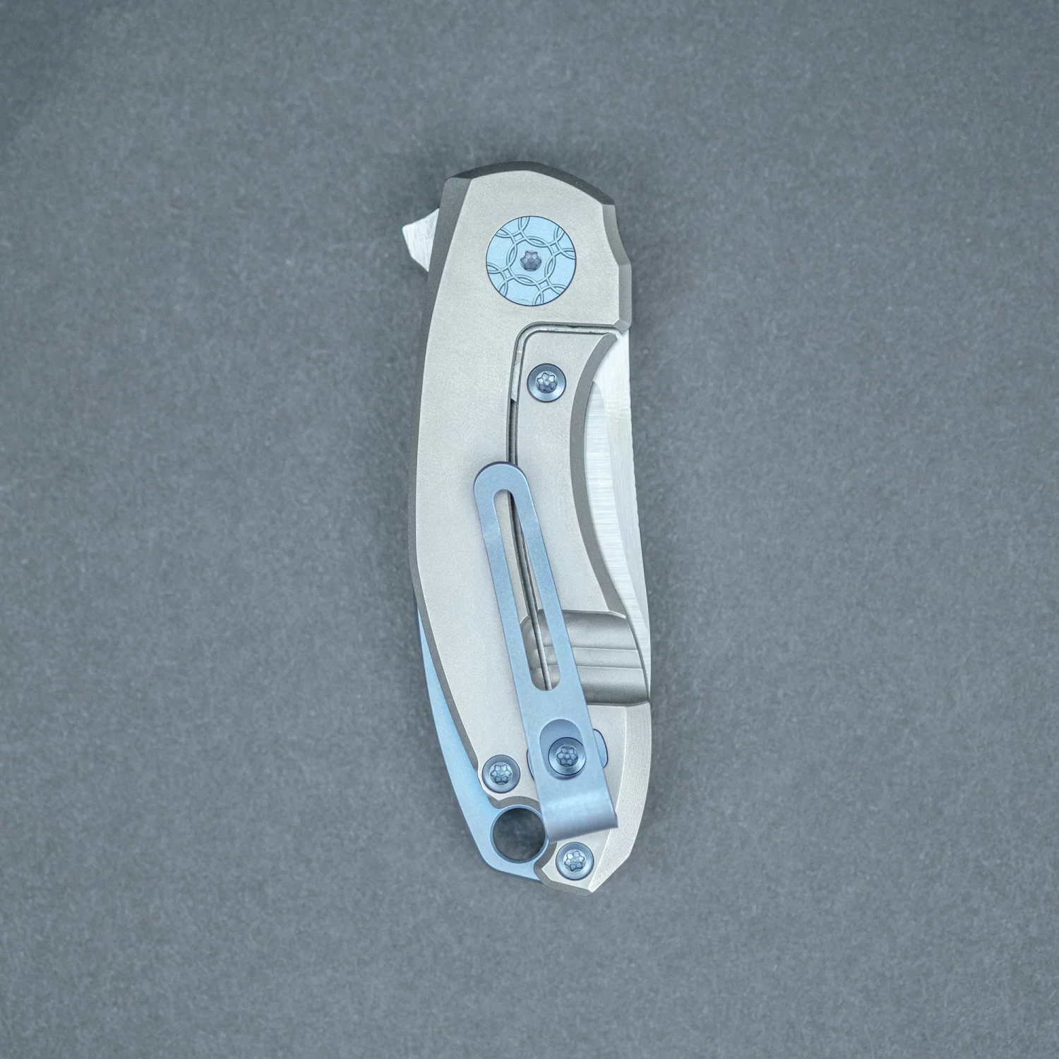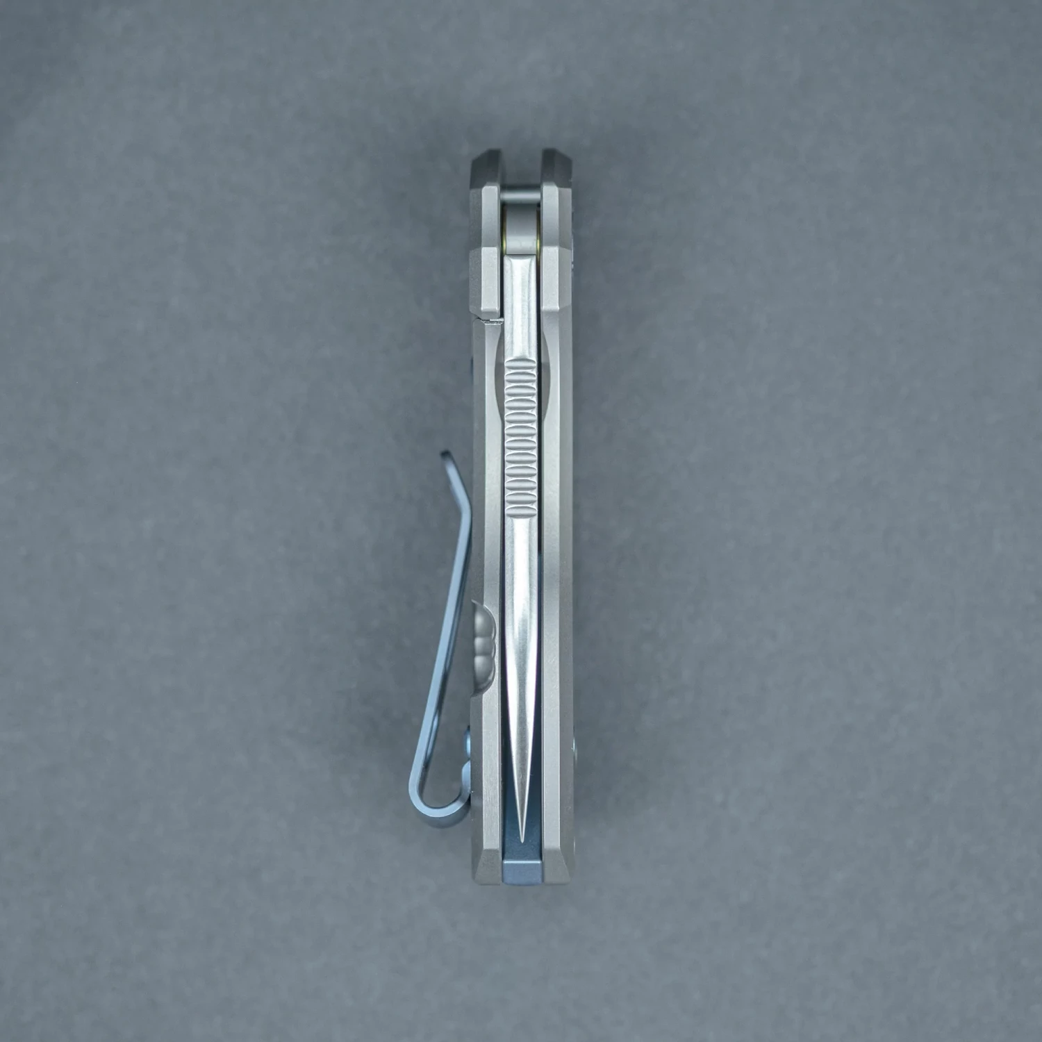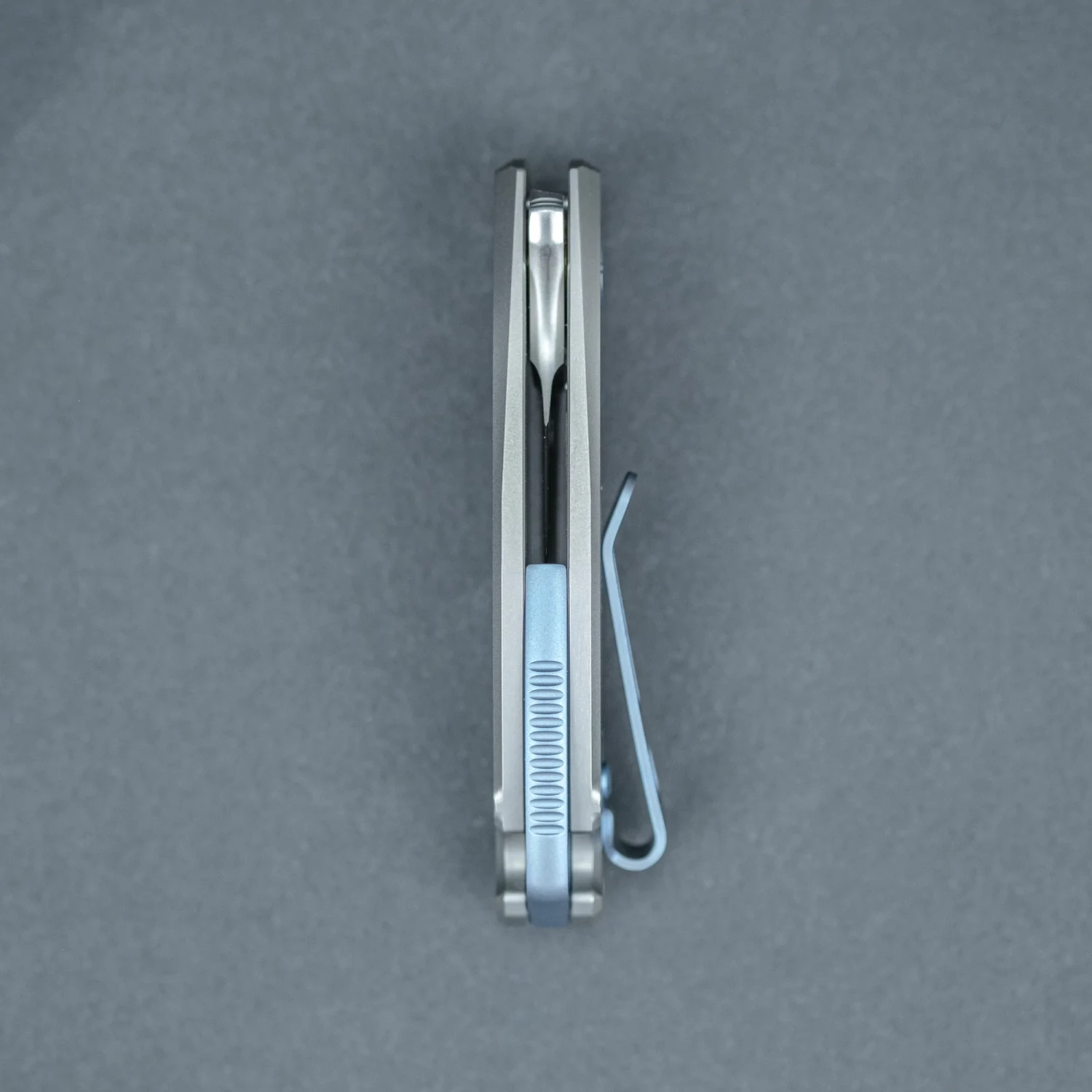 The frame side is milled out of titanium on all four versions. Of course the Copita comes with all the features that such a flipper must have: Ball bearings, M390 steel, steel insert, optically matching backspacers and a super modern design.