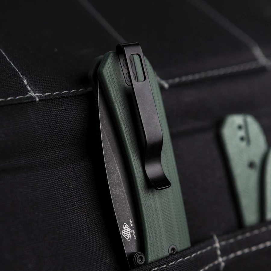Choose between Tan or Green as color options for your durable G10 handle scales. The M390 steel blade provides top-notch cutting performance, while the convertible, deep-carry clip ensures discreet carry