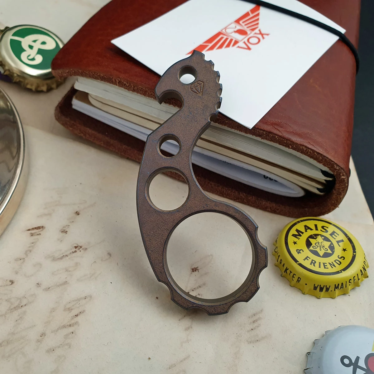 Sulky Seahorse is one of four animals in our Voxnaes custom bottle opener selection. And like all his conspecifics its kind of a rare catch! The Seahorse was given a multive anodization to create a exceptional color finish. The quantities are very limited and worldwide these extraordinary bottle openers are very hard to obtain. The VoxDesign pocket tools are really something out of the ordinary. Somehow cute, extremely stylisch but at the same time primal and raw. And certainly not for every taste. Nevertheless an enormous fascination comes from these little worry stones. For collectors and Jasper Voxnaes fans these bottle openers are the ultimate accessory in the gentleman carry. Jasper Voxnaes himself makes the tools in his workshop in Denmark.