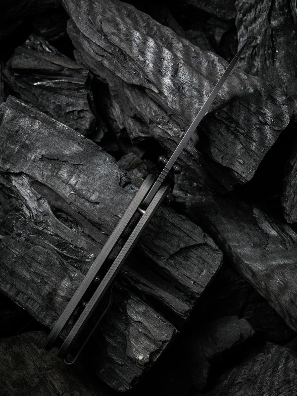 The blade is a very universally shaped Spearpoint blade (comes with a blackwash finish in this version) that has been given a large hollow grind. The genius here is that WE Knife have chosen such a thin grind that the Banter is an incredible cutting machine. The S35VN blade just flies through the cut material and is up to all cutting tasks in EDC. Ceramic ball bearings provide a smooth opening of the blade, giving the Banter a certain playfulness.