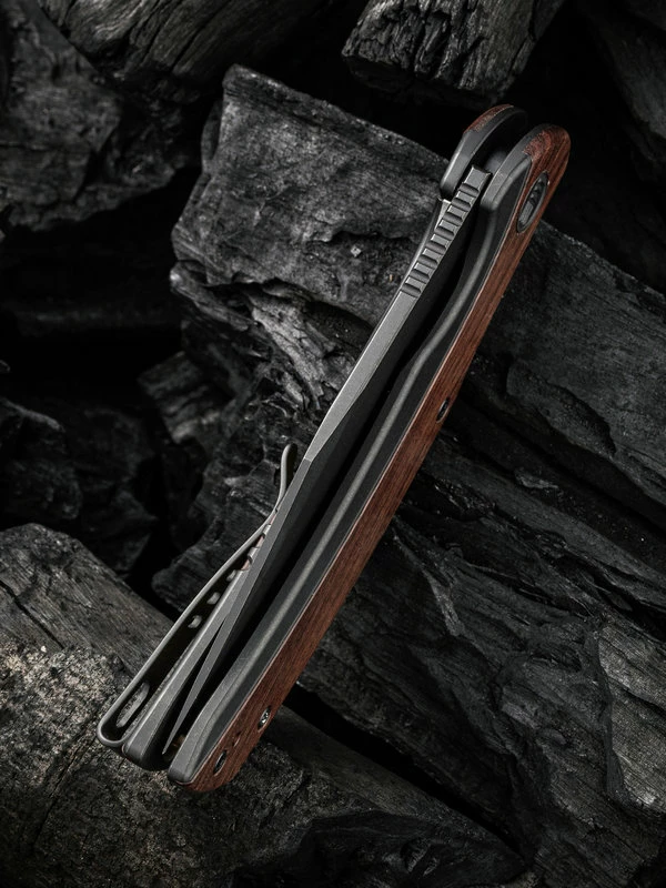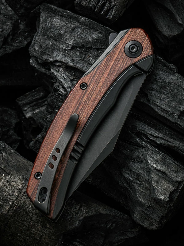 WE Knife Snick Black Titanium Handle & Cuibourtia Wood Inlay