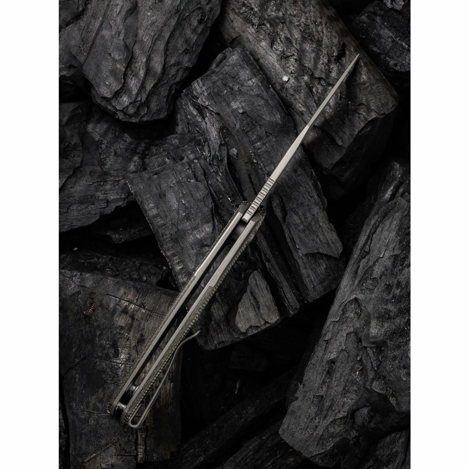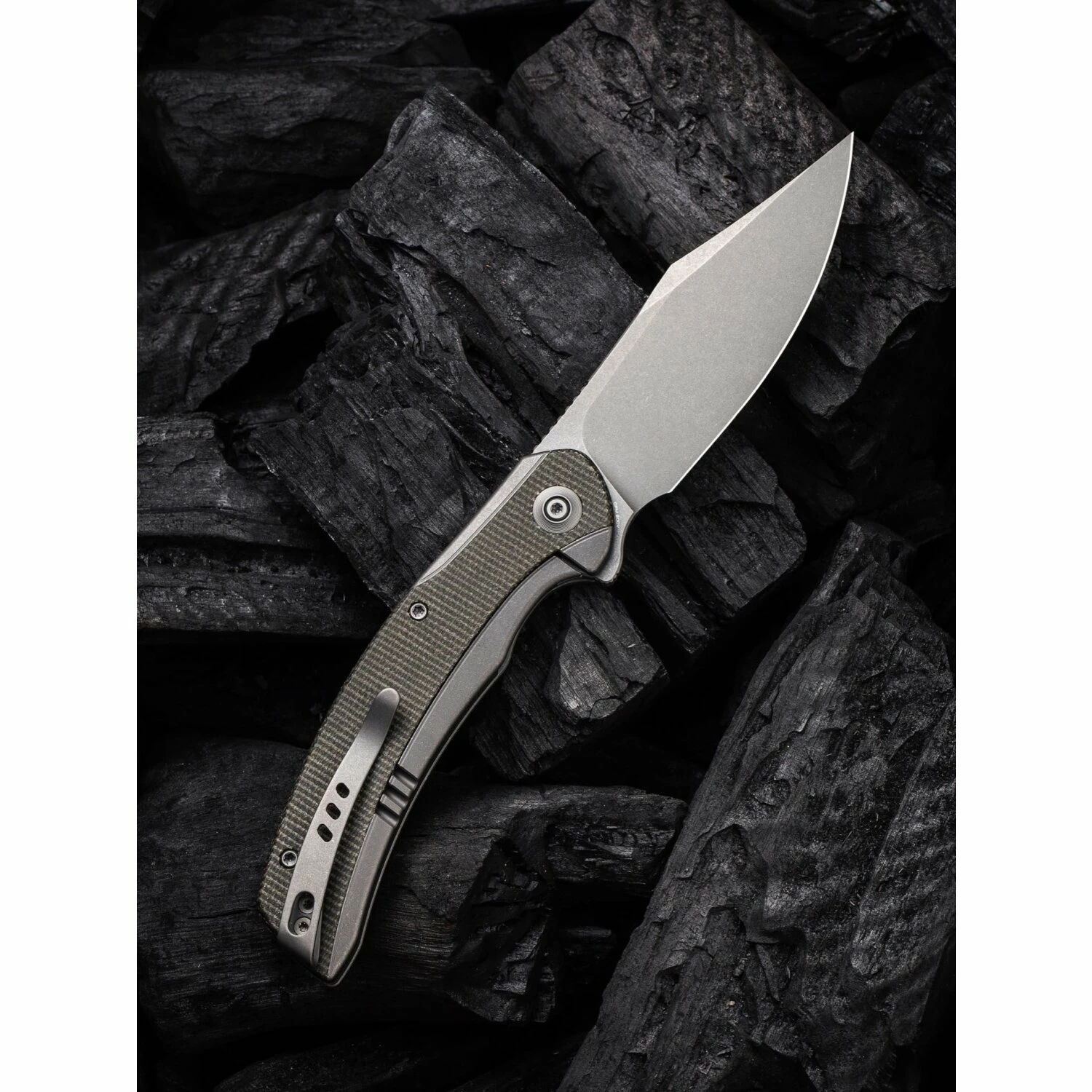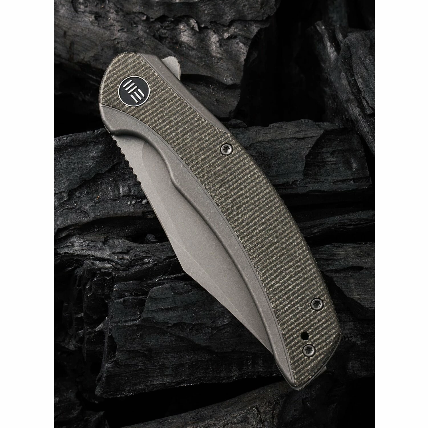 WE Knife Snick Gray Titanium Handle & Dark Green Micarta Inlay